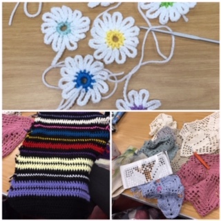 A group of us meet every Monday evening between 7-9 in the Community Room, which is warm and very comfortable. A great variety of crafts are worked, for example, Knitting Crochet, Embroidery, Sewing, Patchwork and Quilting, Weaving, Bead work, Felting and working with Felt, the members being always willing to share their skills.