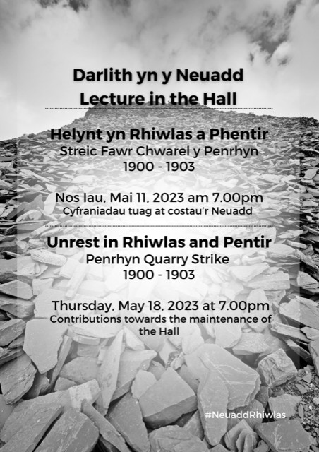 Darlith – Lecture ‘Doedd yr anrhefn hwn yn fwy mynych a chyndyn yn unlle nag yn Rhiwlas.’ Gwalia, Gorffennaf 9, 1901 ‘This chaos was nowhere more frequent and pretentious than in Rhiwlas.’ Gwalia, July 9,1901